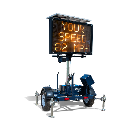 Nuestro remolque insignia de velocidad por radar, el MC360 lo hace todo. La pantalla grande, que se ofrece en 2 tamaños (3’x6′ y 4’x8′), se puede programar para mostrar velocidades de vehículos, mensajes basados en texto, mensajes basados en flechas y gráficos. Cuenta con una pantalla LED ámbar compatible con MUTCD de matriz completa, calendario programable de 365 días, recopilación de datos de tráfico y configuración opcional del sistema de alimentación listo para ALPR/ANPR (reconocimiento automático de matrículas).