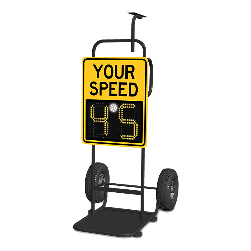 Portátil: Simplemente estacione y asegure el SafePace® Dolly a donde quiera que desee alertar a los conductores sobre su velocidad